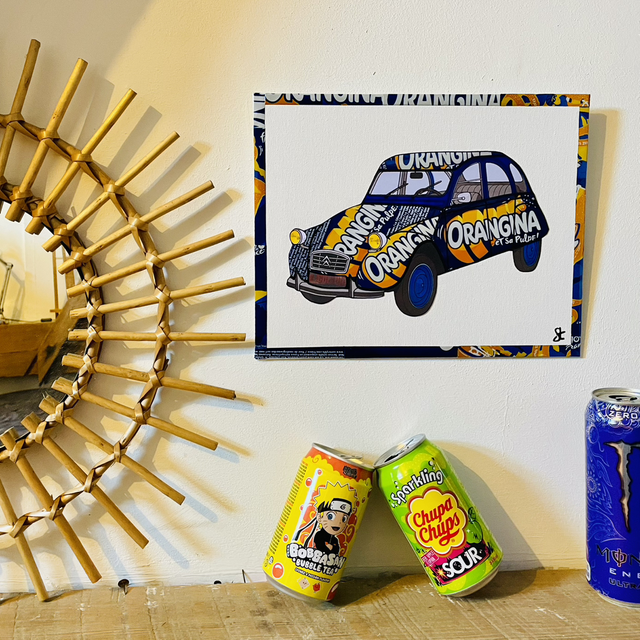 Ajoutez une touche unique et écoresponsable à votre décoration avec ce tableau d’une 2cv vintage , réalisé entièrement à partir de canettes recyclées.