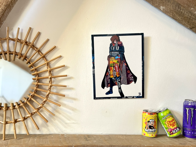 Ce tableau est une pièce originale qui allie art, pop culture et respect de l’environnement. Parfait pour les collectionneurs ou les fans à la recherche d’une œuvre d’art moderne et durable.