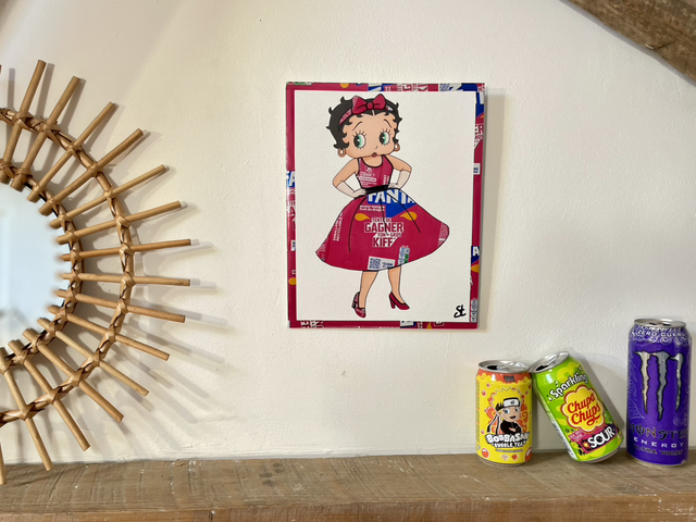 Ce tableau est une pièce originale qui allie art, pop culture et respect de l’environnement. Parfait pour les collectionneurs ou les fans de Betty Boop à la recherche d’une œuvre d’art moderne et durable.
