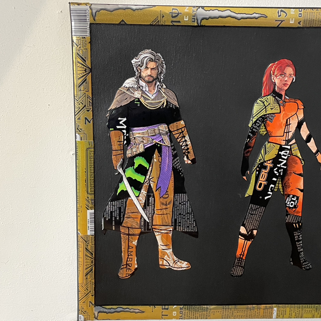 Chaque silhouette est minutieusement découpée, assemblée et collée une à une, apportant relief, texture et profondeur à l’ensemble.