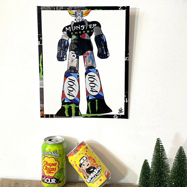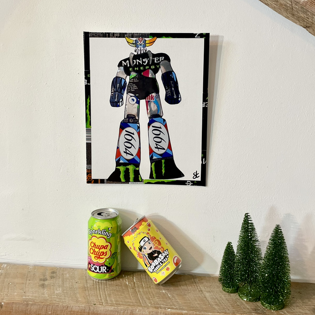 Tableau Goldorak réalisé avec des canettes recyclées