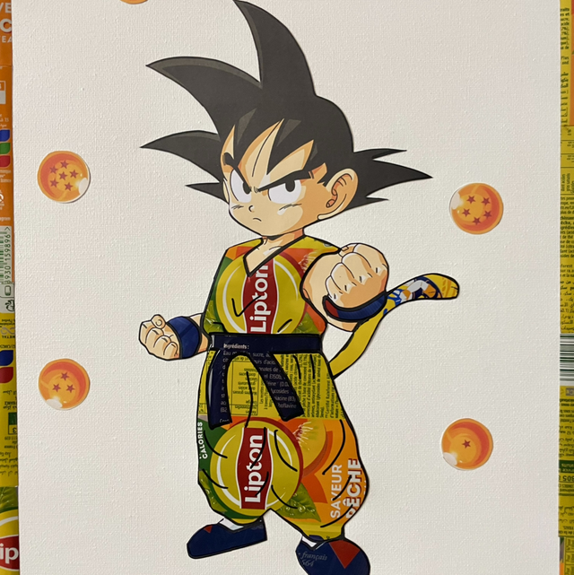 Ajoutez une touche unique et écoresponsable à votre décoration avec ce tableau d'un célèbre manga des années 80 ,réalisé entièrement à partir de canettes recyclées.