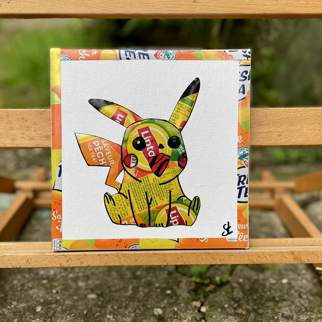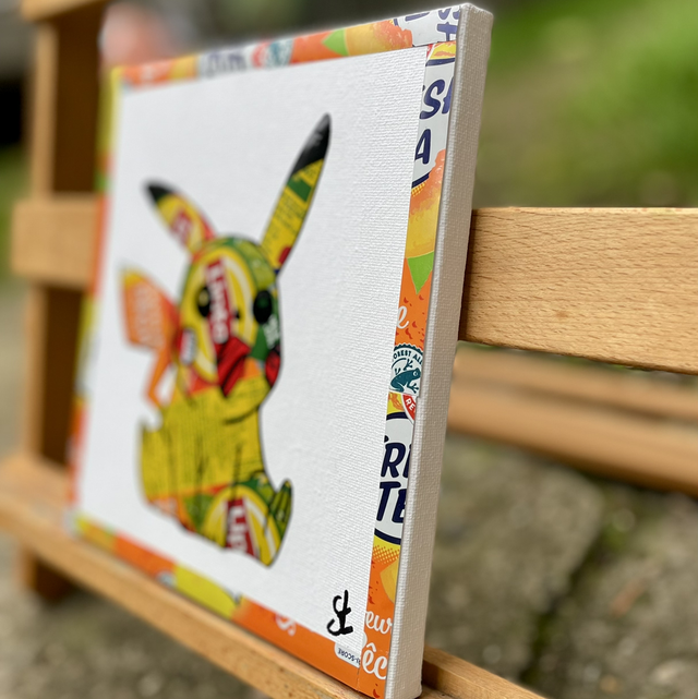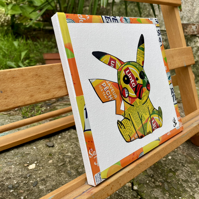 Tableau Pikachu 20x20 cm réalisé avec des canettes recyclées