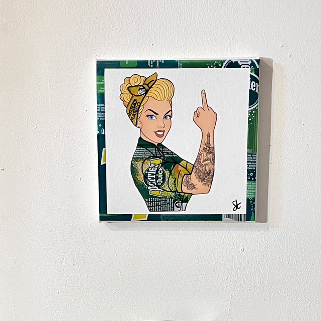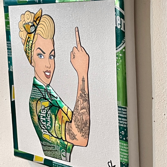 Tableau Pin-up vintage réalisé avec des canettes recyclées