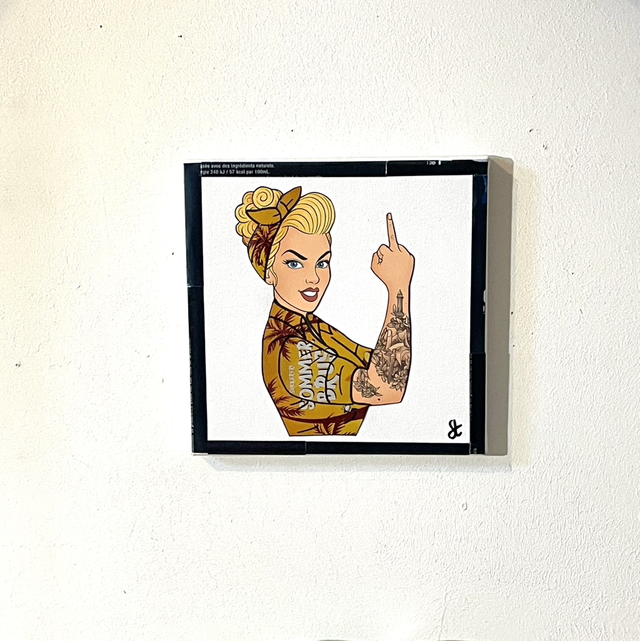 Tableau pin-up Vintage réalisé avec des canettes recyclées