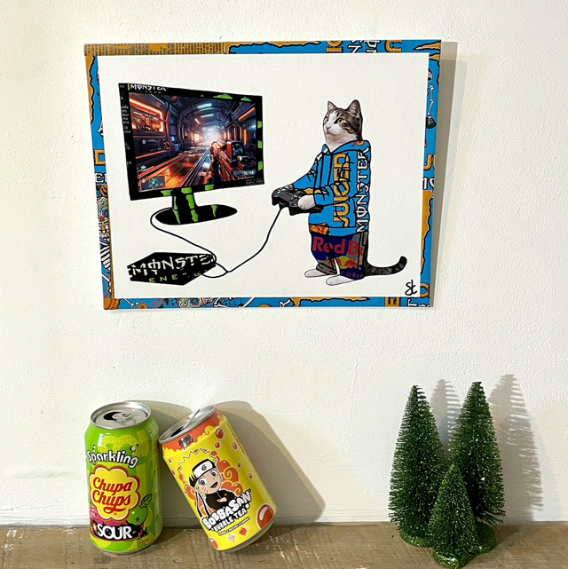 Tableau Chat qui joue à la console