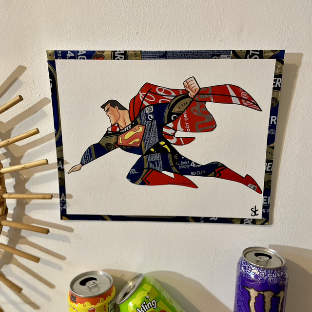 Ajoutez une touche unique et écoresponsable à votre décoration avec ce tableau réalisé entièrement à partir de canettes recyclées.