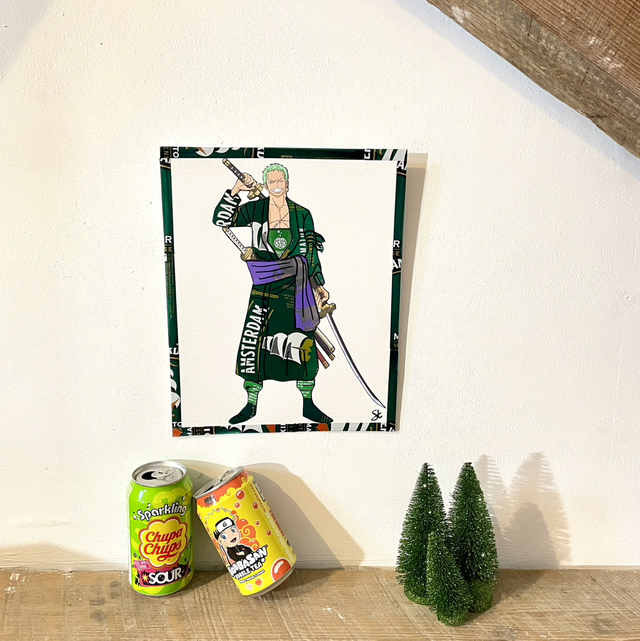 Ce tableau est une pièce originale qui allie art, pop culture et respect de l’environnement. Parfait pour les collectionneurs ou les fans à la recherche d’une œuvre d’art moderne et durable.